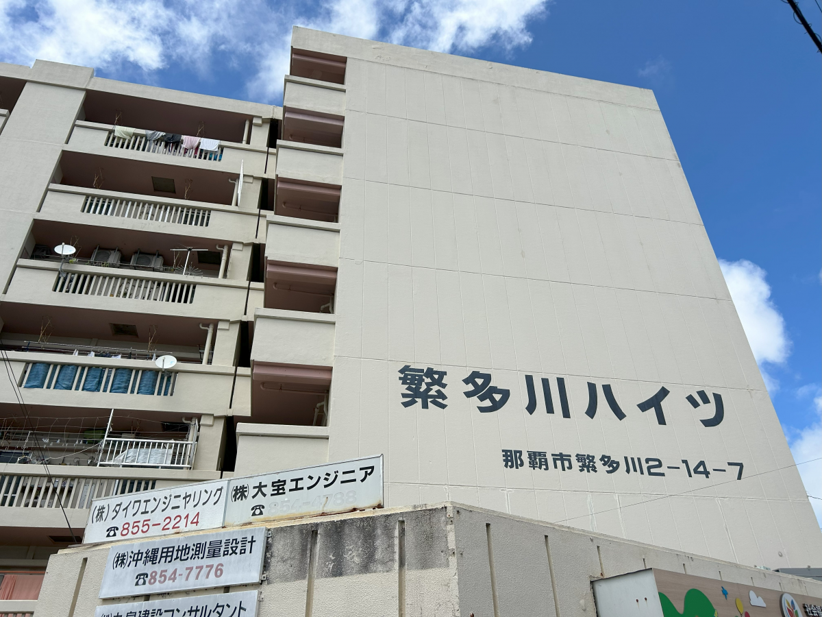 サンエー繁多川 徒歩2分、かねひで繁多川市場 徒歩4分。毎日のお買い物には便利です! 小学校は徒歩7分ですが、中学校は目の前です! レトロ感満載の建物内にすべり台の付いているマンションです!